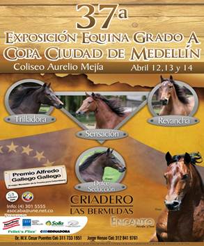 Entre el 12 y 14 de abril, se realizará en las instalaciones del Coliseo Aurelio Mejía la 37ª Exposición Equina Grado A “Copa Ciudad de Medellín”, evento organizado por la Asociación de Caballistas de Antioquia ASOCABA.