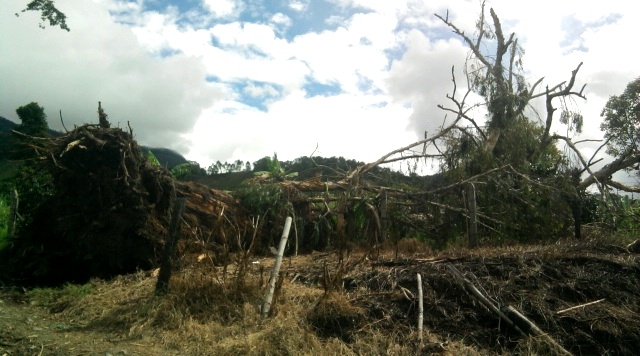 Me reporta un corresponsal de mi tierrita que hace un par de días se cayó, colapso, se vino al suelo, el gran árbol que caracterizaba la entrada a la Vereda Quebrada Bonita en la parte alta de la localidad, específicamente a 200 metros después del Hotel Balandú de Comfenalco en la carretera que conduce hacia el municipio de Riosucio en el Departamento de Caldas.