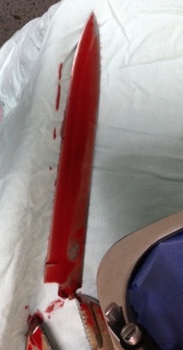 Para la historia y el recuerdo quedó la foto del cuchillo con el que el “Matarife de Sucre” pretendía hacerle una exfoliación en la espalda, pero afortunadamente los ángeles, arcángeles y querubines hicieron lo suyo.