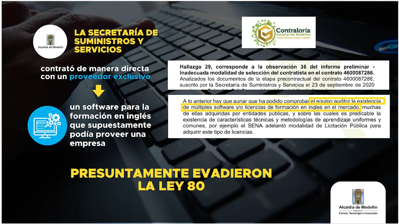 La Secretaría de Suministros y Servicios contrató a dedo un Software para la formación en inglés de estudiantes de las Instituciones Educativas de Medellín, presuntamente violando las leyes de contratación pública.