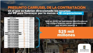 Lo más grave, explicó el mandatario local, es que se evidenció un presunto carrusel de contratación en el que se habrían direccionado los recursos del PP para favorecer, por lo menos, a 18 corporaciones.