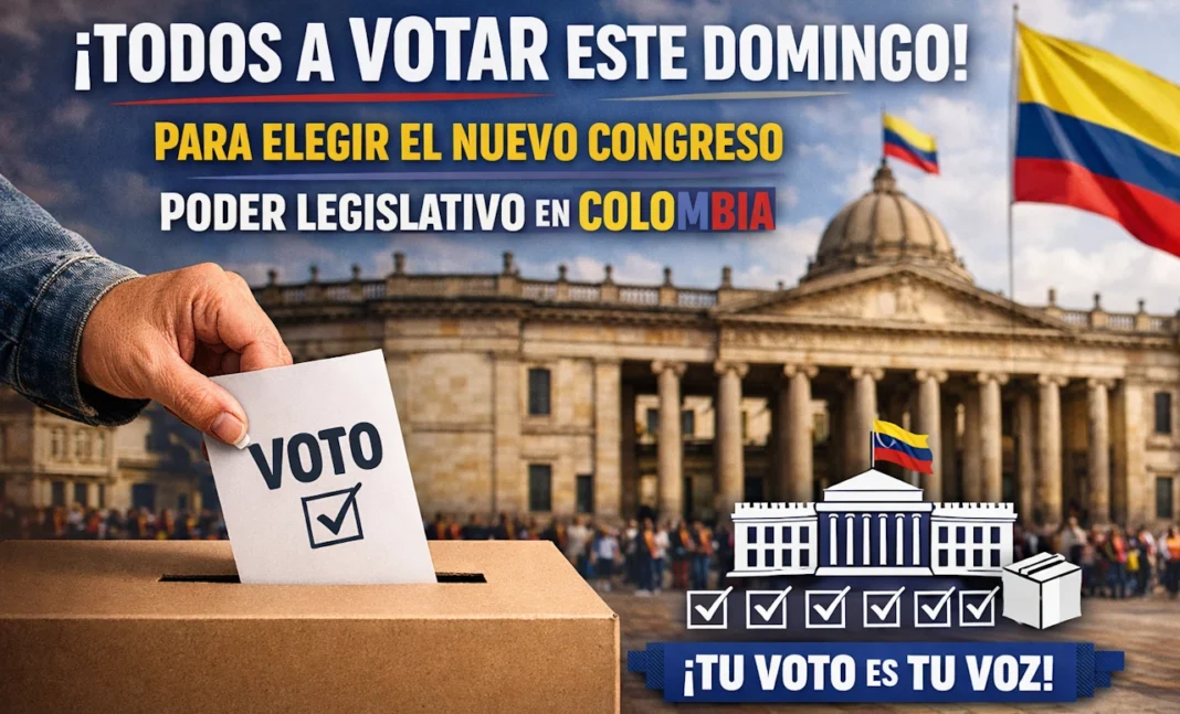 - Todos a votar este domingo 8 de marzo de 2026 para elegir el nuevo Congreso, Senado y Cámara, el poder legislativo en Colombia.